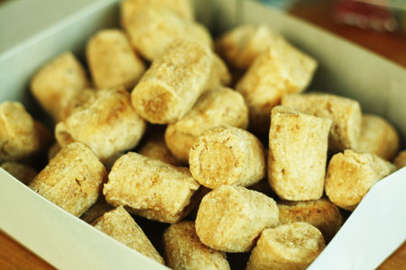 Sehingga menghasilkan lempengan sagu berwarna kecokelatan.